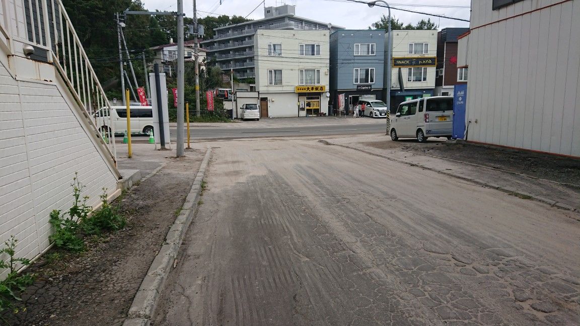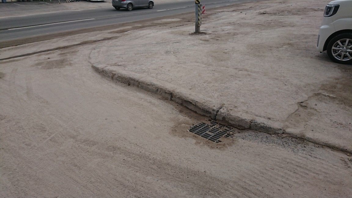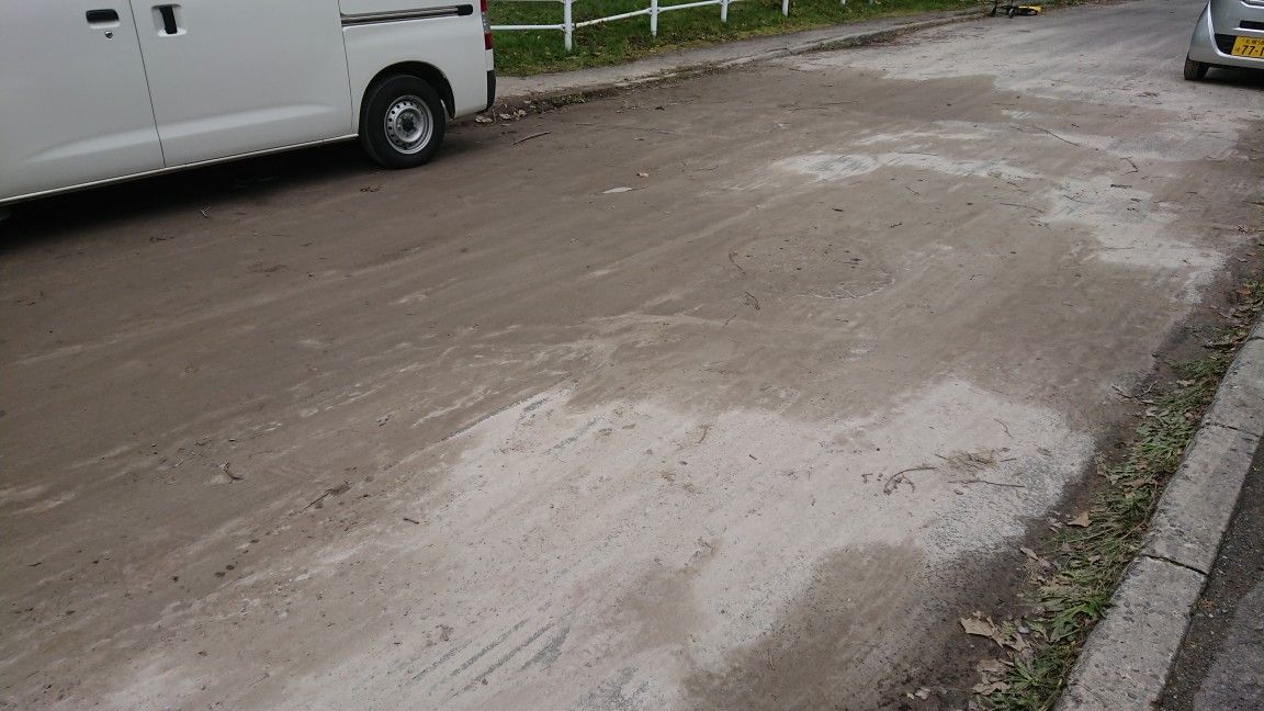 こちらが現在の様子です。泥が溜まっていますが車は普通に通れます。